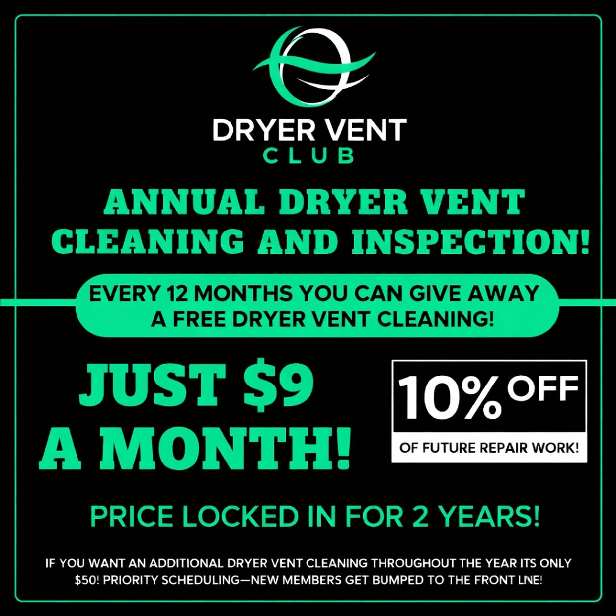 That's right! If you stay in the Dryer Vent Club, we reward you by letting you give someone a Free Dryer Vent Cleaning every 12 months!